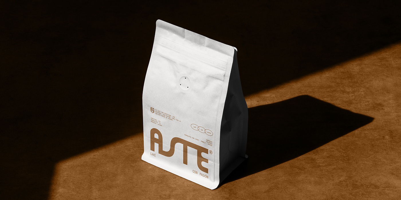 The project is built on the concept of “Encounter.” Parche Studio developed a brand system that balances vintage aesthetics and minimalism. The logo functions as a symbol of union, a sophisticated isotype that anchors the brand’s positioning. Visually, the development relies on a palette inspired by the quality of their product: deep, earthy tones contrasted with clean layouts. The art direction for the photography follows this same logic, classic compositions creating a club atmosphere that feels high-end but never unapproachable. Every touchpoint, including the minimalist coasters and the architectural integration by Casa Esquina, reinforces the idea that ASTE is a place where coffee is celebrated as a craft.