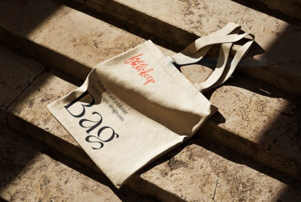 Free Canvas Bag Hanging On Tripod PSD Mockup